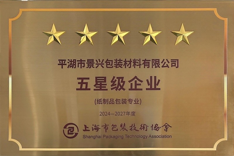 喜報!景興紙業(yè)全資子公司平湖景包被上海市包裝技術(shù)協(xié)會授予紙制品包裝專業(yè)“五星級企業(yè)”榮譽(yù)稱號